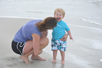 A couple pictures from our trips to the ocean. And one from the pool. Heated to a balmy 80 degrees, they went swimming almost every night even though it was pretty brisk out. Ben loves blowing bubbles with his dad and did a really great job flapping around in the water...